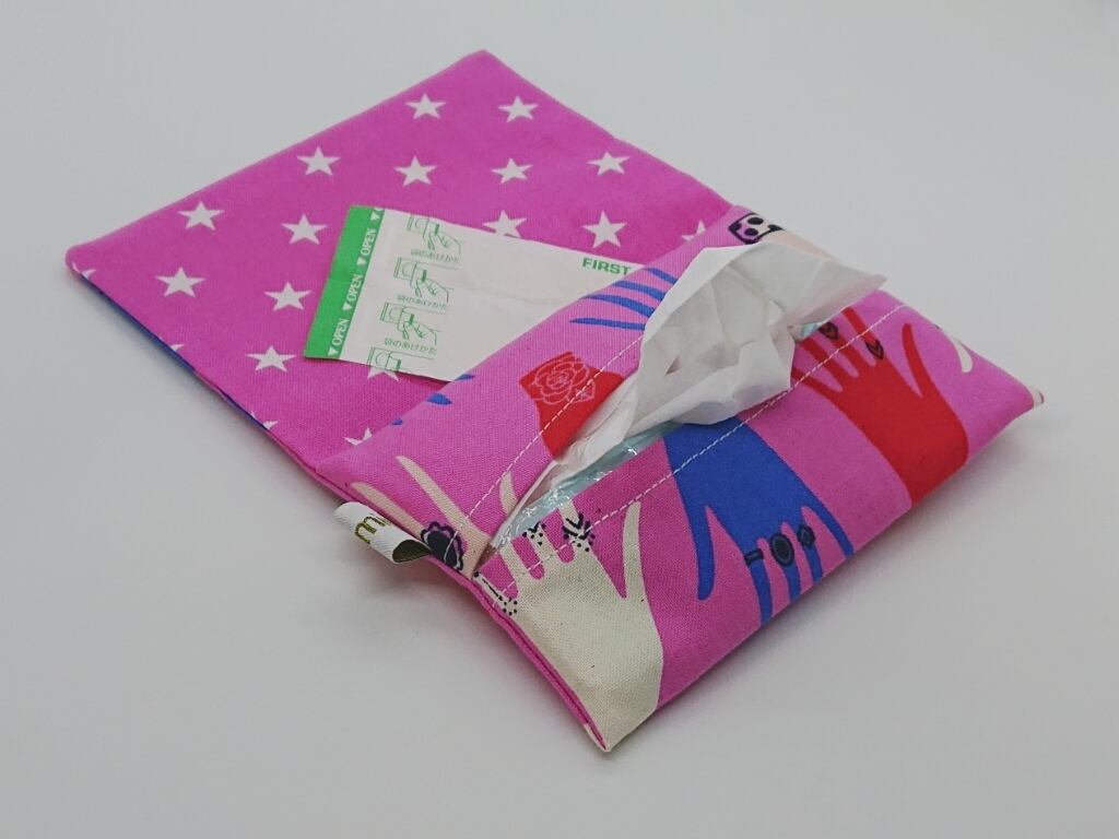 ポケットテッシュ収納部分の後ろ側には絆創膏やヘアピン、小さめのサニタリーなどが入るポケット付きなのでなかなかの優れものです♪