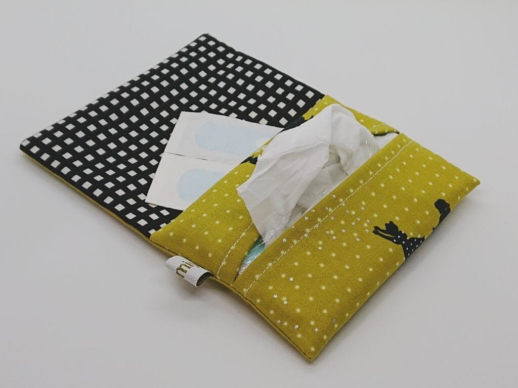 ポケットテッシュ収納部分の後ろ側には絆創膏やヘアピン、小さめのサニタリーなどが入るポケット付きなのでなかなかの優れものです♪