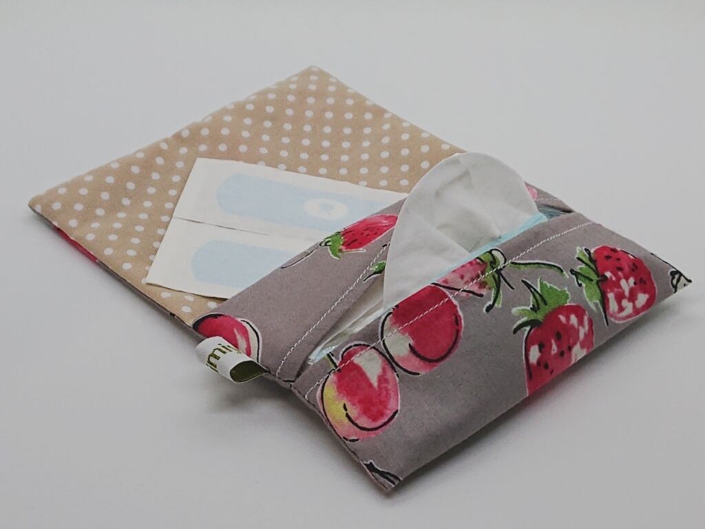ポケットテッシュ収納部分の後ろ側には絆創膏やヘアピン、小さめのサニタリーなどが入るポケット付きなのでなかなかの優れものです♪